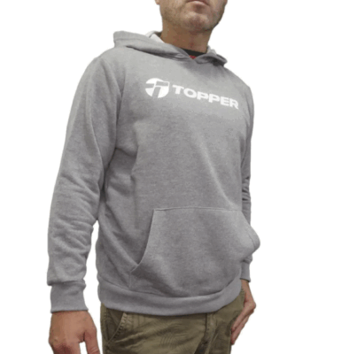 Buzo con bolsillo canguro y capucha. Manga pegada con hombro caido. Puños de cintura y mangas en complemento. Logo estampado en el pecho. Tela: Rústico de algodón/poliéster + Complemento – SOFT – Punto – 70% Algodón / 30% Poliéster.