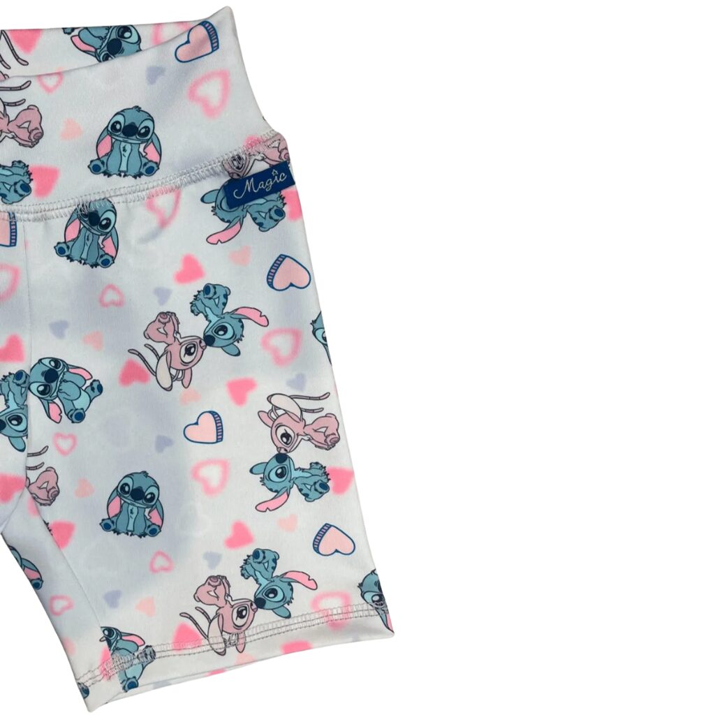 La calza cuenta con una estampa completa de Stitch y Angel, acompañada de corazones en colores vibrantes que hacen que la prenda sea adorable y llamativa. Además, tiene una cintura que se ajusta suavemente al cuerpo, brindando confort durante todo el día.