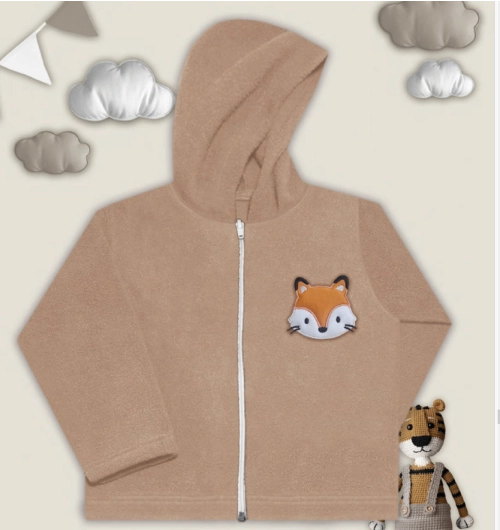 Camperita de bebé con capucha, confeccionada en tejido polar ultra suave y abrigado, ideal para los días frescos. Su diseño en color camel neutro combina fácilmente con cualquier conjunto, mientras que el tierno aplique bordado de zorrito en el pecho aporta un detalle adorable y divertido.