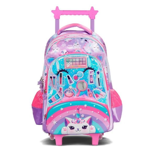 Práctica y original, esta mochila footy con carro y luces led es ideal para el día a día. Cuenta con tres compartimientos, bolsillos laterales y un bolsillo frontal con diseño termoformado. Fabricada con material holográfico y apliques móviles, incluye tiras reforzadas y manija de agarre para mayor comodidad.