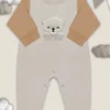 Este adorable enterito de bebé es perfecto para acompañar a los bebés con suavidad y ternura. Confeccionado en tela suave y abrigada, cuenta con mangas largas en tono camel y cuerpo en beige claro, ideal para mantener a tu bebé cómodo y calentito.