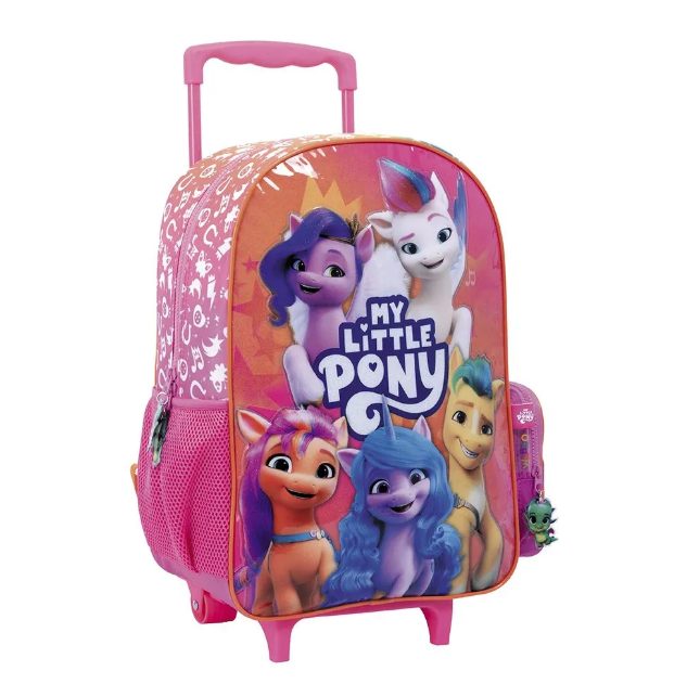 La mochila con carro “Group” de My Little Pony en naranja ofrece comodidad sobre ruedas. Con detalles que capturan la alegría de los ponis, esta mochila con ruedas es perfecta para los amantes de My Little Pony