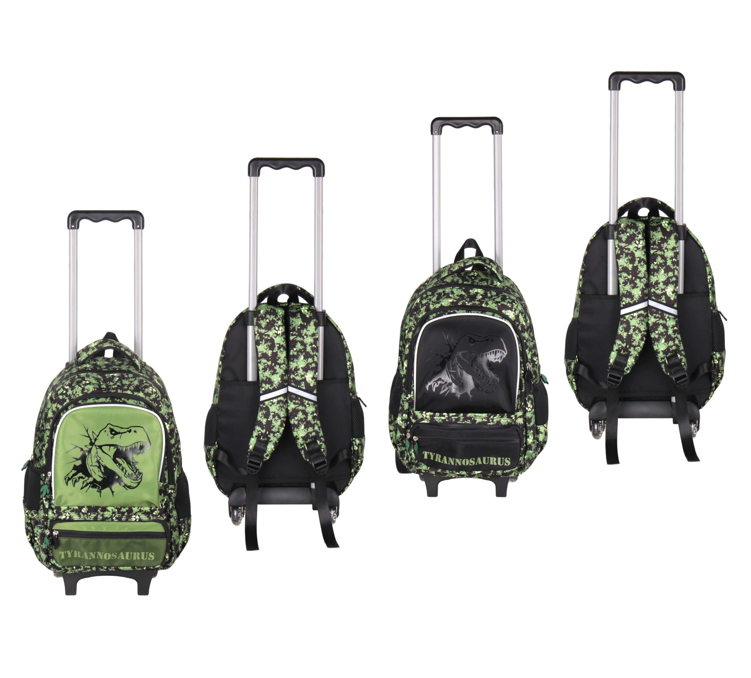 Mochila escolar infantil con carro, ideal para el uso diario escolar. Diseñada con un estampado de dinosaurio atractivo y resistente, combina funcionalidad, comodidad y diseño.