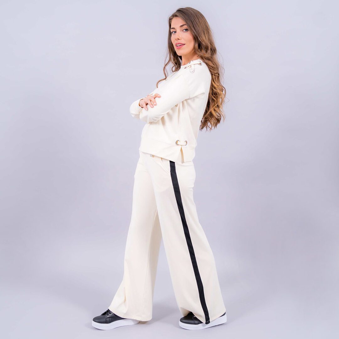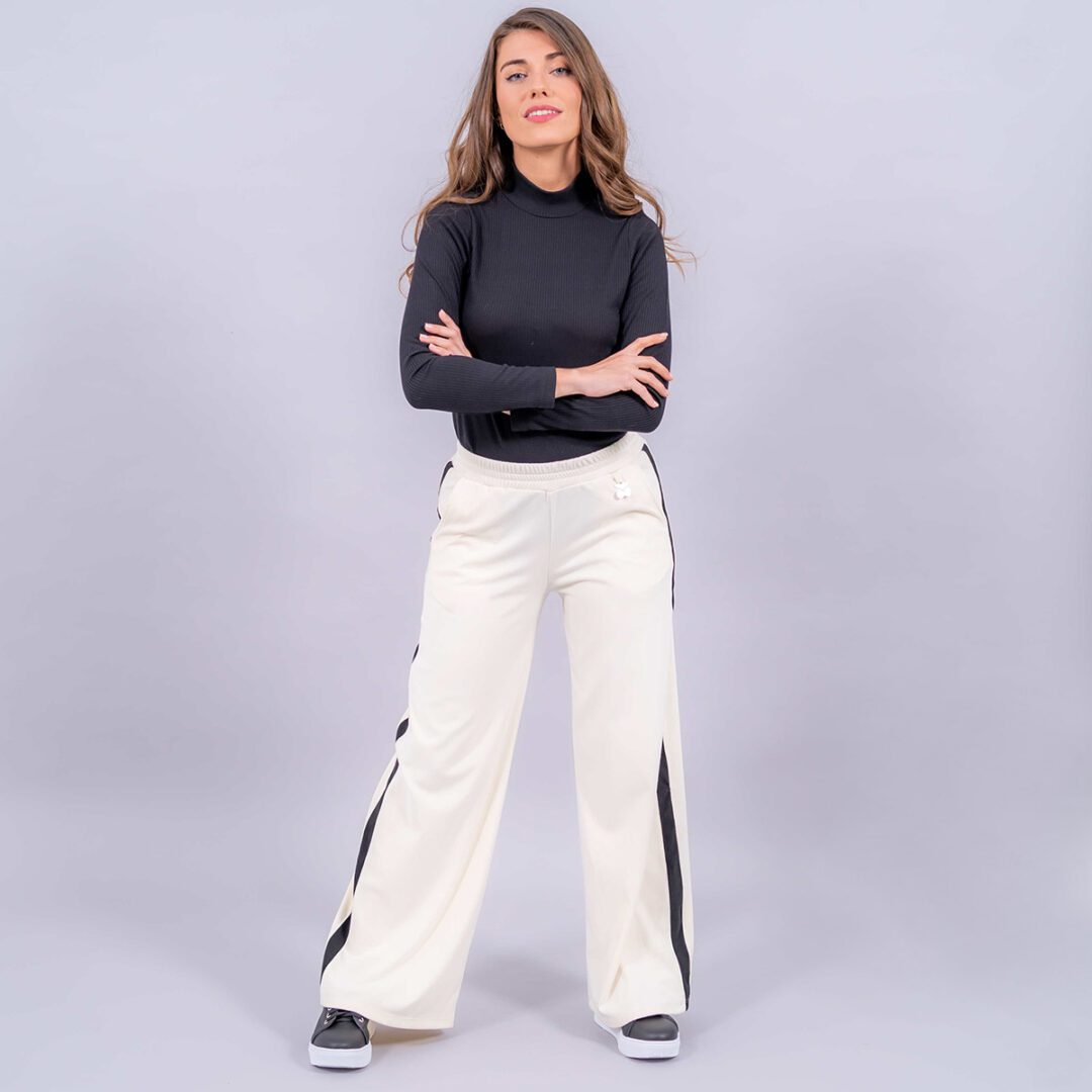Elegancia y comodidad en una sola prenda. Confeccionado en un tejido liviano y fluido, este pantalón de corte recto ofrece una silueta estilizada y sofisticada. Su diseño de cintura alta con elástico garantiza un calce cómodo y favorecedor, adaptándose al cuerpo sin perder estructura.