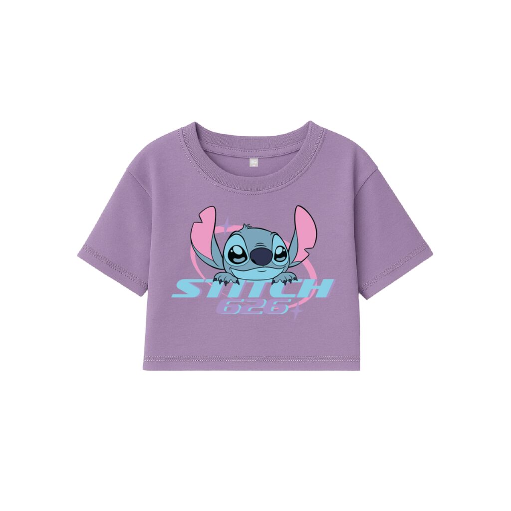 Su diseño estilo crop le da un toque moderno y canchero, mientras que la estampa frontal de Stitch —en colores vibrantes y con detalles adorables— la convierte en una prenda irresistible. El cuello redondo y las mangas cortas brindan mayor confort, permitiendo libertad total de movimiento.